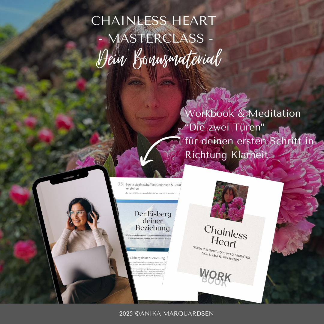 Mit der Aufzeichnung von CHAINLESS HEART bekommst du nicht nur wertvolle Impulse für deine Klarheit – du erhältst zusätzlich zwei kraftvolle Extras, die dich noch tiefer in deinen Prozess eintauchen lassen: