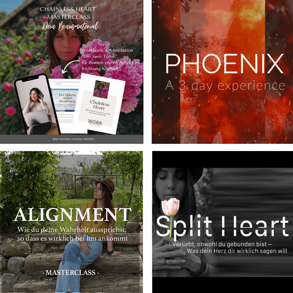 Dieses Programm ist für die Frau, die nicht nur lernen will, mit Angst umzugehen — sondern die spürt: Ich bin hier, um ein anderes Leben zu führen. Ein Leben, das nicht nur „funktioniert“, sondern lebendig ist. Eine Beziehung, die wirklich erfüllt. Eine Liebe, die alles sprengt, was jemals da war.